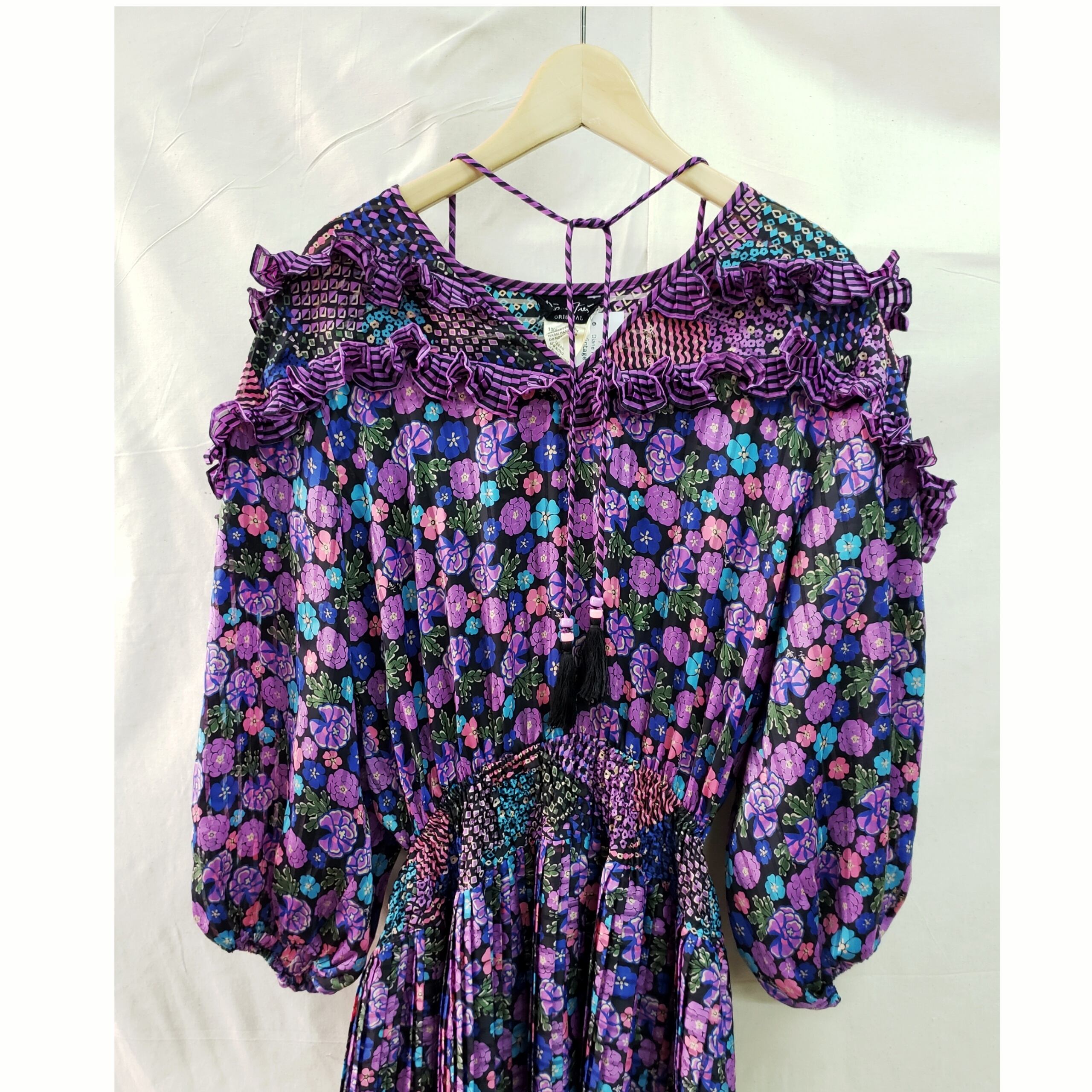 くしゃくしゃに丸めてもシワにならず崩れない上質なポリエステルジョーゼットに、オリジナルテキスタイルの鮮やかで大胆なパターンや、フリルやプリーツ使いが多い個性的なシルエットが印象的なブランドです◎