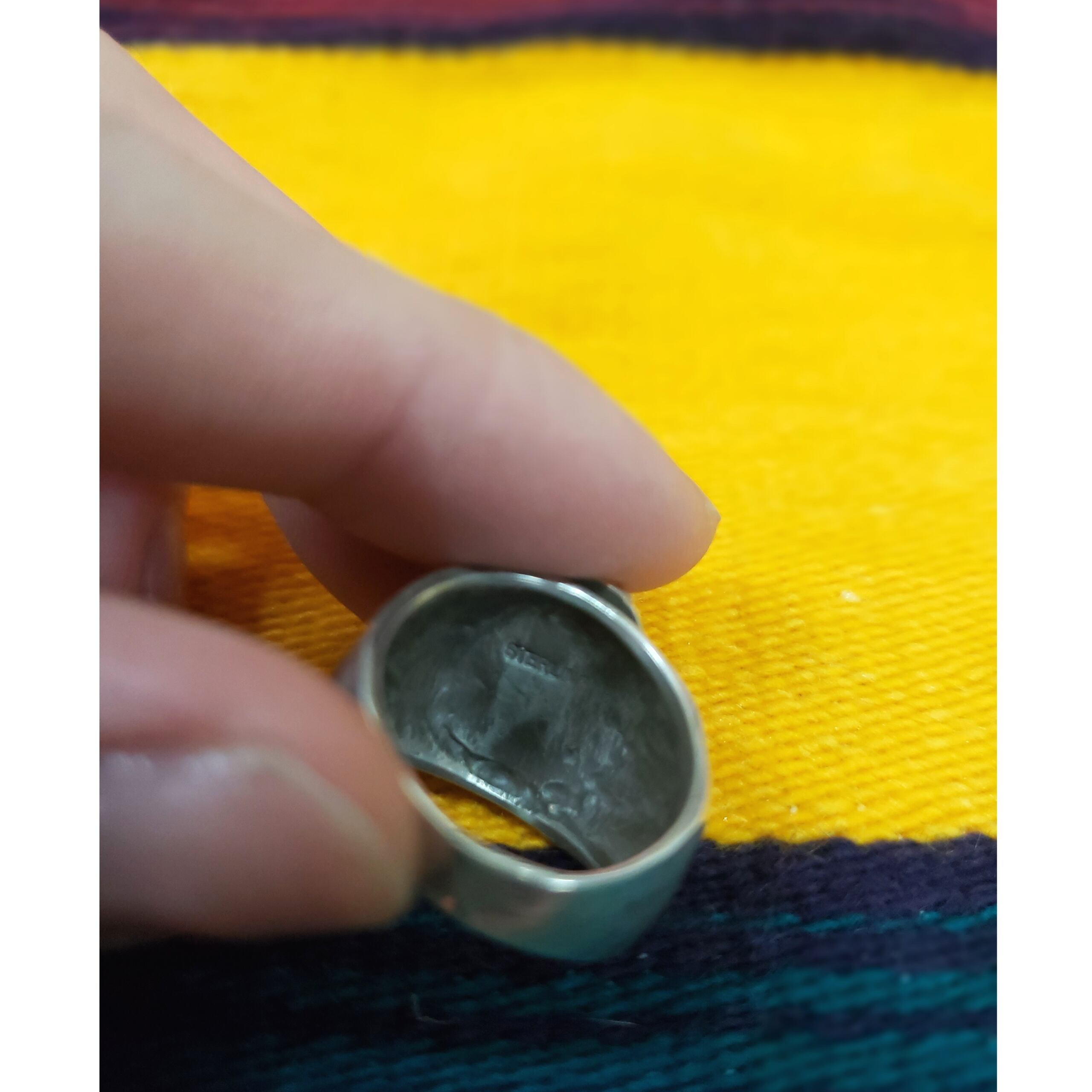 Vintage Native American Jewelry Navajo carving&turquoise silver ring 【MM350】